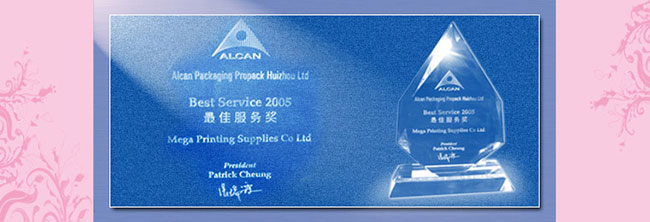 On June 9, 2006, won the ALCAN group huizhou treasure company 2005 annual parker ink supplier "best service award".