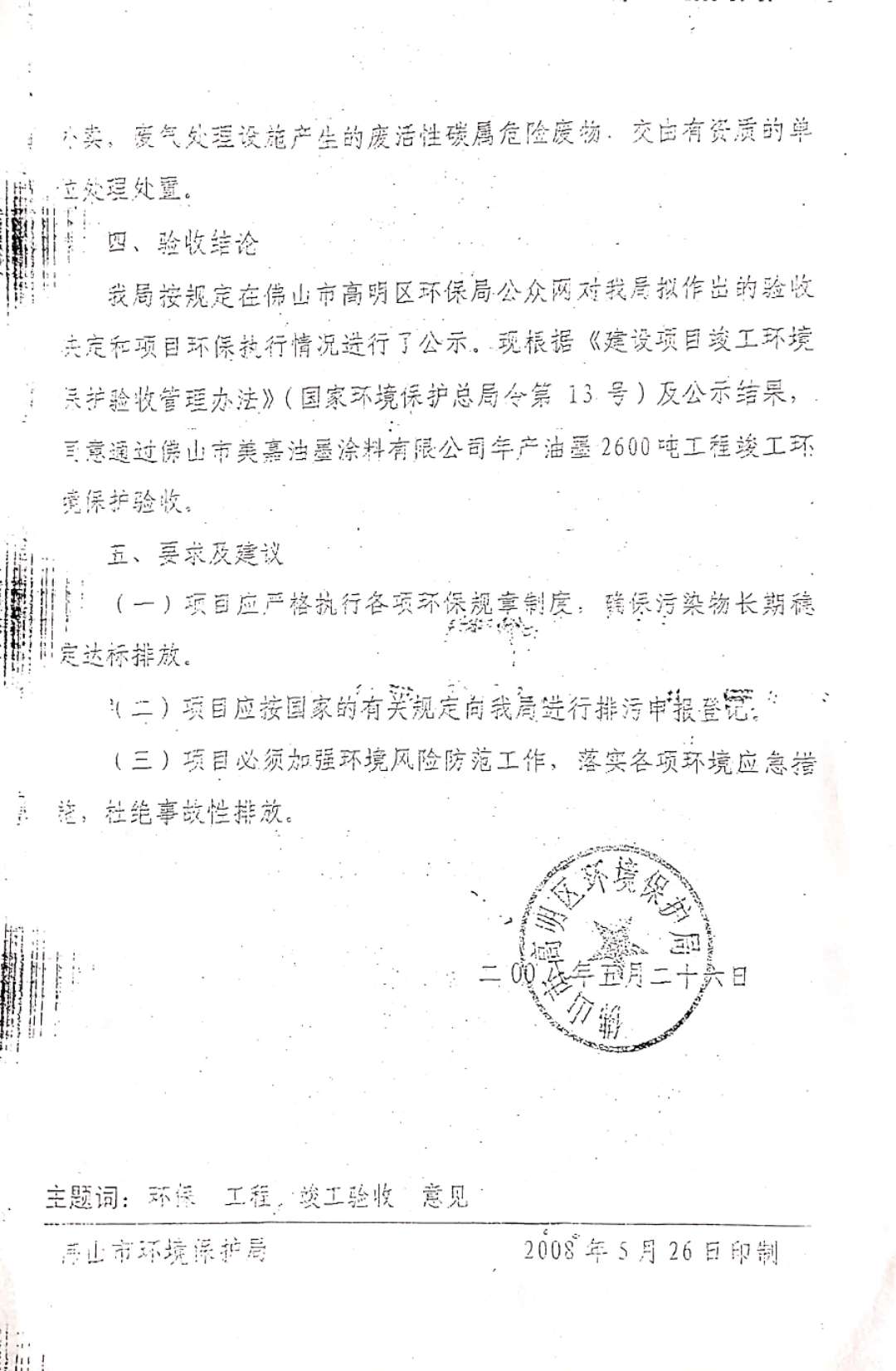 環(huán)保驗(yàn)收文件