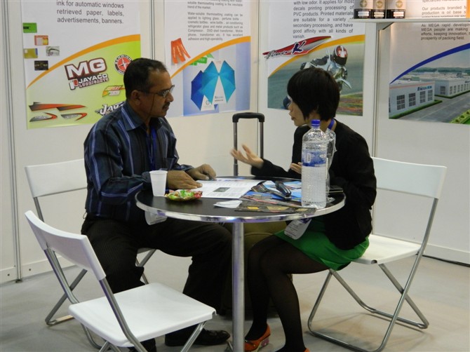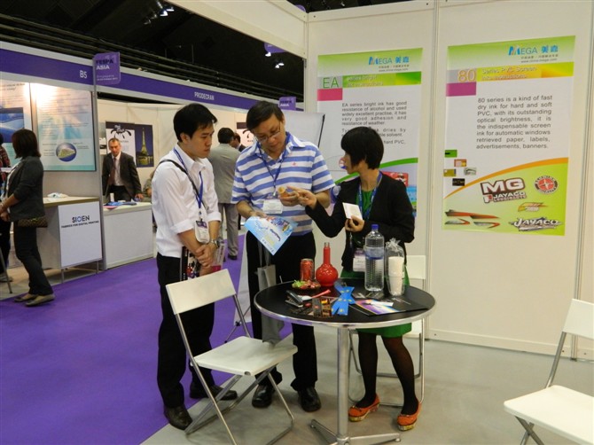 2011年10月,我們參加了FESPA于新加坡舉辦的國(guó)際絲網(wǎng)印刷展會(huì),展會(huì)上精美的印件,特別是新產(chǎn)品水性噴漆及熱轉(zhuǎn)印油墨吸引了很多買家前來(lái)咨詢產(chǎn)品和技術(shù)信息,為美嘉進(jìn)一步走向世界奠定了良好的基礎(chǔ)。